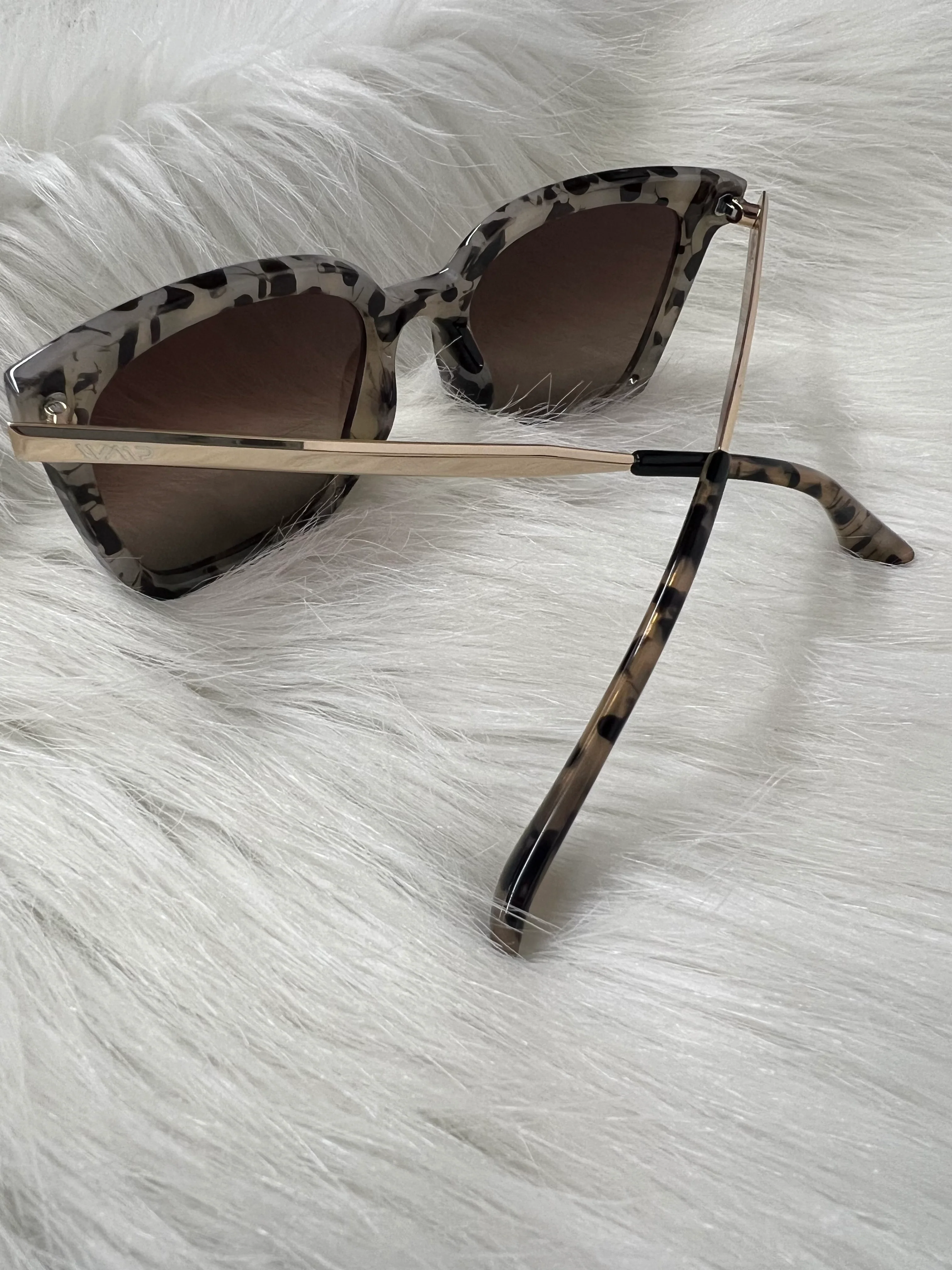 You'll be reaching for your new go-to accessory that pulls any look together with our Alys Sunglasses! Featuring an oversized square frame, these sunnies suit a wide array of face shapes, and occasions. Whether you're going to brunch with your coworkers or you're hitting the beach with some friends, this frame goes with anything. Light brown tortoise frames, gold arms, & tortoise on the earpiece. A small WMP logo on the upper right lens and on the arm.
