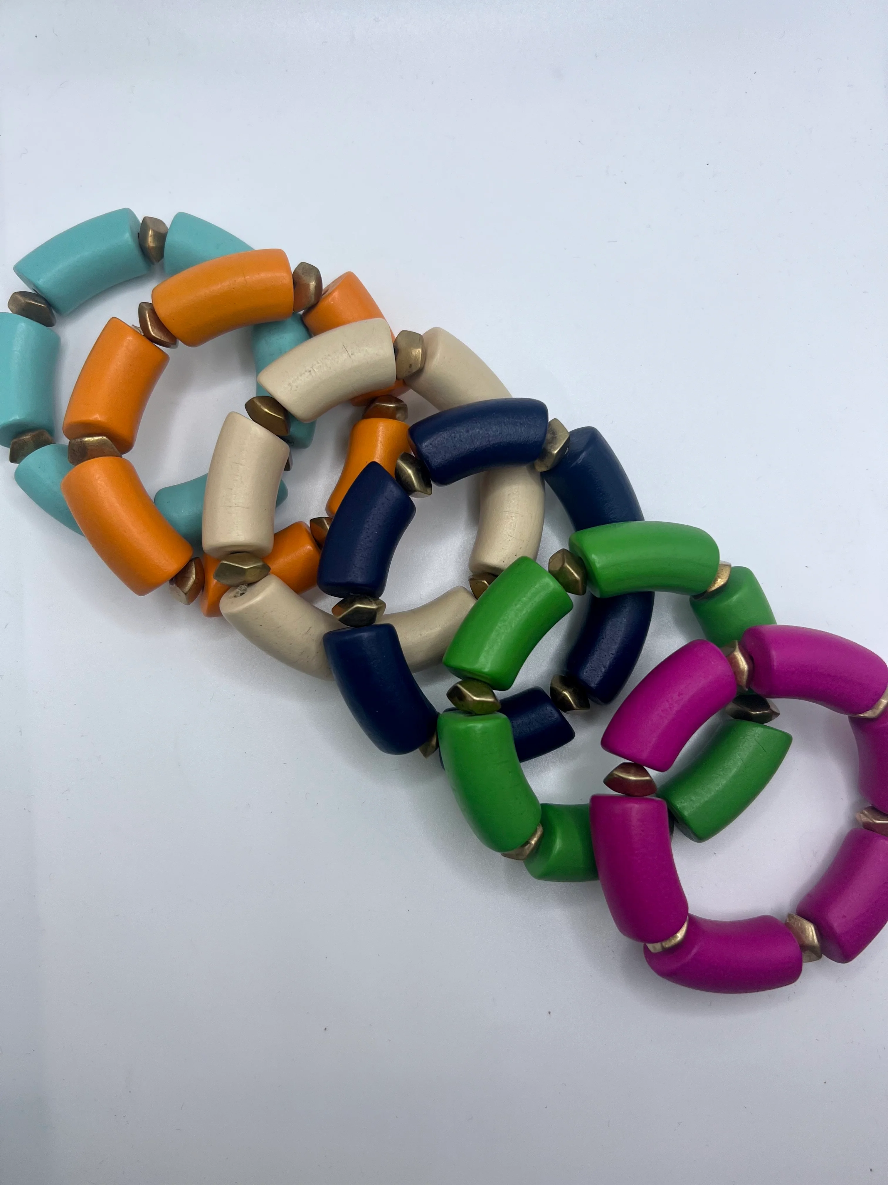 Our Amaya Bracelets are the perfect way to accessorize your summer wardrobe! A single stretch bracelet with a large wooden bead separated by a small gold bead. We love this bracelet on its own or wear a few together for a big impact. The options are endless and you will love wearing these all summer long!